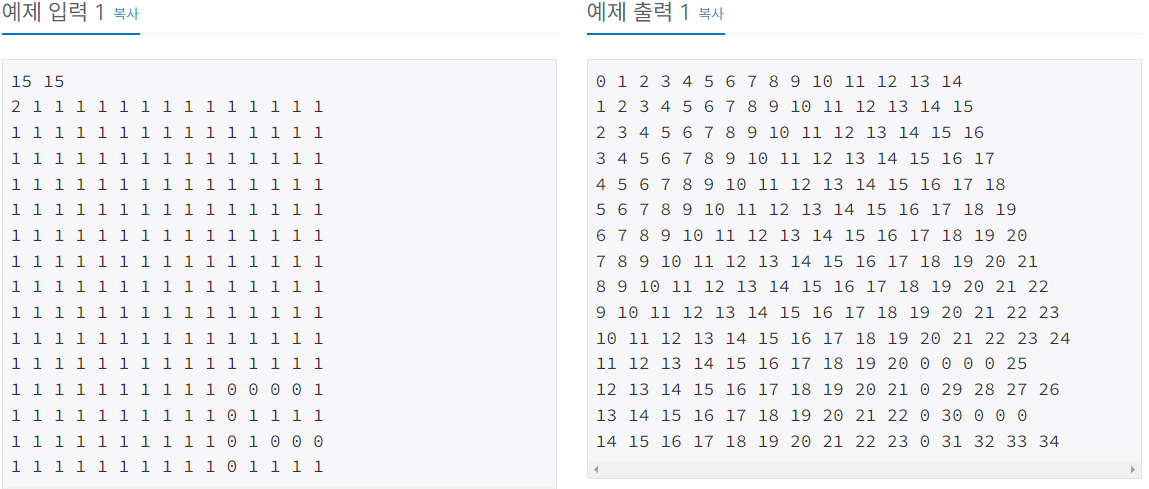 1. 원래 이동할수 없는 지역일경우 0으로 표시해야한다.